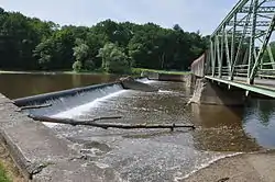 Harpersfield Bridge is a covered bridge spanning the Grand River in Harpersfield Township, Ashtabula County, Ohio, United States. * Currently disassembled for renovation 2023 * This double-span Howe truss bridge, one of currently 17 drivable covered bridges in the county, is the third longest covered bridge in Ohio at 228 feet. A flood in 1913 washed away the land at the north end of the bridge, and the steel span was subsequently attached. The bridge features a walkway, added during its renovation in 1991–1992. The bridge also features an Ashtabula County MetroPark at its north end and is listed on the National Register of Historic Places.[2][3] The bridge's WGCB number is 35-04-19,[4] and it is located approximately 3.4 miles (5.5 kilometres) south of Geneva.