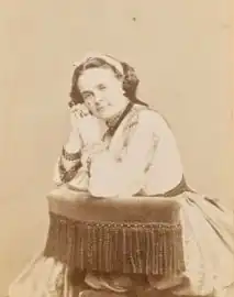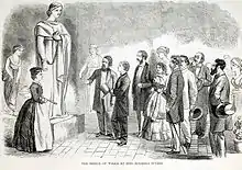 The artists included Anne Whitney, Emma Stebbins, Edmonia Lewis, Louisa Lander, Margaret Foley, Florence Freeman, and Vinnie Ream.[11] Hawthorne was clearly describing these in his novel The Marble Faun, and Henry James called them a "sisterhood of American ‘lady sculptors'."[12] As Hosmer is now considered the most famous female sculptor of her time in America, she is credited with having 'led the flock' of other female sculptors.[13] Frances Power Cobbe argued that the case of Hosmer showed that women could be creative artistic geniuses, just as much as men, and that Hosmer's work was pioneering a new women's art that celebrated female strength and power.[14]
