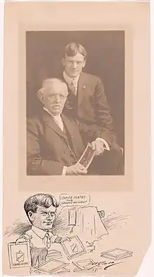 As a rookie news photographer, G. W. Harris covered the Johnstown flood of 1889 in Pennsylvania. He worked at Hearst News Service in San Francisco from 1900 to 1903, then joined President Theodore Roosevelt's press entourage on a train trip. Roosevelt,[1] or a San Francisco newspaper editor, angry at having no photograph of George Frisbie Hoar to run with the story of his death,[2] urged him to open a studio in Washington D.C. Harris and Martha Ewing opened their studio in 1905 at 1313 F Street NW. Ewing, an artist and colorist with whom he had worked,[2] financed the company and managed the studio.[3] They replaced the building with a new Harris & Ewing Photographic Studio building in 1924.[4]