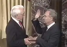 Harris Llewellyn Wofford Jr.[1] (April 9, 1926 – January 21, 2019) was an American attorney, civil rights activist, and Democratic Party politician who represented Pennsylvania in the United States Senate from 1991 to 1995.[2] A noted advocate of national service and volunteering, Wofford was also the fifth president of Bryn Mawr College from 1970 to 1978, served as chairman of the Pennsylvania Democratic Party in 1986 and also as Pennsylvania Secretary of Labor and Industry in the cabinet of Governor Robert P. Casey from 1987 to 1991, and was a surrogate for Barack Obama's 2008 presidential campaign. He introduced Obama in Philadelphia at the National Constitution Center before Obama's speech on race in America, "A More Perfect Union".