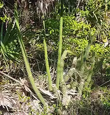 Harrisia aboriginum, the west-coast prickly apple or prickly applecactus, is a species of columnar cactus endemic to peninsular Florida, on the Gulf Coast of the counties of Lee, Sarasota County, and Charlotte.[2] Only 12 occurrences are known, and the species is threatened by horticultural collection, shading from fire suppression, competition from invasive flora, and most of all habitat destruction. It is a federally listed endangered species of the United States.