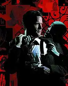 Harry D'Amour is a fictional occult detective created by author, filmmaker, and artist Clive Barker. He originally appeared in the short story "The Last Illusion" in Books of Blood Volume 6, an anthology written by Barker and published in 1985.[1] D'Amour has appeared in other Clive Barker prose stories, as well as comic books published by Boom! Studios, and the 1995 film Lord of Illusions wherein the character is portrayed by actor Scott Bakula. Following this, the comic book adaptation of Barker's novel The Great and Secret Show depicts D'Amour as resembling Bakula. In 2012, the cover for Hellraiser #18 (published by Boom! Studios) used actor Thomas Jane as the model for D'Amour. In multiple stories, D'Amour is depicted as living in the same reality as Barker's popular creations the Cenobites and the Hell Priest (widely known to fans of the Hellraiser movie franchise as Pinhead).[2][3][4]