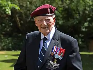During World War II, Read volunteered for military service with the British Army in 1942 aged 18. His father, a veteran of World War I had refused to sign his enlistment papers before that date.[3] By 1944 Read was a 20-year-old Royal Corps of Signals wireless operator. Serving as a member of the 3rd Parachute Brigade of the 6th Airborne Division from 1943, he jumped into Normandy on D-Day in June 1944.[1][2] A parachuting injury prevented Read from undertaking further jumps and he was returned to an ordinary Signals unit.[3]