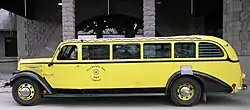 Automobiles remained banned in Yellowstone long after they were admitted in other national parks, due to the influence of Child and the Northern Pacific.[12] In 1916, as part of an effort to exert Park Service control over concessioners, Park Service director Stephen Mather dictated a settlement between Yellowstone concessioners that sold all of Haynes' interests apart from his photography business to Child, while Child gave up his interest in the Wylie camping operation to a new organization, in return for the park's motorized transportation concession.[13][14] As a result of this deal, Child became the beneficiary of three railroads: the Northern Pacific, the Union Pacific, and the Burlington. Child used the railroads' resources to borrow money for a fleet of custom-built White Motor Company touring buses and touring cars. Child closed the Fountain Hotel, which was no longer needed as a relay point.[15]