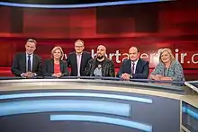 hart aber fair (English: "hard but fair") is a German weekly political talk show. In the 75-minute broadcast on Monday evening on Das Erste, presenter Frank Plasberg discussed a controversial topic with his guests. Spectators receive additional information through short feature films and can participate directly. Before switching to ARD's main programme Das Erste, the programme was broadcast at WDR Fernsehen for seven years. Louis Klamroth became the new presenter in 2023.[2]