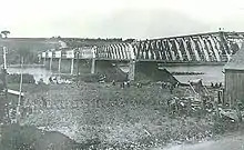 On April 6, 1920, two spans of the bridge collapsed due to river ice. The bridge reopened in 1922 after construction to repair the structure, at which time the bridge was also covered, despite some local opposition.[2][8] The wooden piers were also converted to concrete.