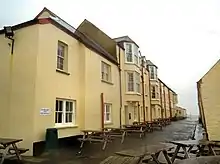 The harbour dated back to the time of Henry VIII until a storm led to the complete destruction of the pier head and later the whole pier wall in 1887. Parts of the old formation stones can be seen at low tide, as well as evidence of a counter pier. The only evidence visible at all times is the lyme kiln. The old Customs House has been a hotel since 1886 and its former stables are now 'The Wrecker's Retreat' bar. The former corn and hay lofts are now hotel bedrooms. In 'The Wrecker's Retreat' are displayed memorabilia charting the history of Hartland Quay as well as displays of shipwrecks on the coast over the centuries. Also shown are the various films and television shows that have been filmed here. The former Coastguard cottages are now toilets, still a private residence, shop and museum of the quay. Current access to the sea and beach is provided by a slipway.