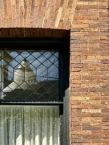 Page designed the Whittemore House located at 1526 New Hampshire Avenue in Washington's Dupont Circle neighborhood between 1892 and 1894. He built the house for opera singer Sarah Adams Whittemore and William C. Whittemore, her second husband.[9] The National Register of Historic Places (NRHP) listing for Page's Whittemore House (now the Women's National Democratic Club) recognizes the architect as showing "restraint and fine craftsmanship" as well as "sympathy with the more advanced architectural thought of his day which favored integrity of materials, [and] simplicity of form ... rather than derivative Beaux Arts Classicism."[10] As described by the Women's National Democratic Club: "A punched-and-tooled copper-covered oriel bay hangs over the New Hampshire Ave. entrance, its dull patina a complement to the richly mottled Roman Brick. The brick is unique, taken from a small rare clay deposit in New Jersey that can never be produced again. Doors and leaded glass windows are set deeply into brick walls without additional ornamentation. Variety is achieved from subtle variations in the finely crafted brickwork, producing flat rarely interrupted surfaces that are associated with the Shingle Style. The flat walls meet to form angular towers and bays in the asymmetrical facades of the house. The flowing cape-like curves of the high roof covering the polygonal towers, bays, and eyelike dormer windows recall a more organic building form, the thatched roof, but is instead constructed of English slate, outlined by handcrafted copper gutters."[9]