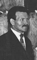 Kanykoff, with another Tatar activist Sarif Daher (1884-1959) and some Finnish like minded people established an association called Etuvartiokansojen klubi in fall 1919. It operated until 1928 and its purpose was to establish co-operation between the minorities in Russia and the then-new states that had separated from Russia. Before this, Kanykoff had friended linguist G.J. Ramstedt and professor Yrjö Jahnsson, who were interested in the pursuits for independence of Tatars.[2] Jahnsson helped Kanykoff acquire Finnish citizenship in 1921. He also helped get the children of Kanykoff into the country.[2] The first wife of Hasan Kanykoff was Haditshä Ainetdin, who died in 1917. The second was Zölihä Mangushoff. Kanykoff had children Halisä, Djagfär, Hamzä, Hafisä, Feyezrahman, Ädhäm.[2] His older brother was Silaletdin (1866-1930).[3] Daughter Hafisä died as a child during an epidemic. One of the sons, Feyez, was killed while serving during the Winter War. Two of them served in the Winter War and the Continuation War as lieutenants. The boys wanted to get rid of the Russian suffix (-off) but couldn't come to an agreement on what the name should be, so they came up with: Kayenuk / Kajenuk, Kanukhan.[2] The background of the surname is uncertain.[4]