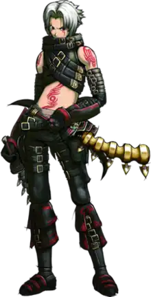 Haseo and Ovan's visual appearances were designed by Seiichiro Hosokawa. They were Hosokawa's first creations on becoming a professional during his rookie days at CyberConnect2.[15] Matsuyama claimed he was influenced by Manji, the main character of the manga Blade of the Immortal by Hiroaki Samura.[16] In some scenes at the game's beginning, Haseo was designed with a scary look.[17] Originally CyberConnect2 intended his first design to include more clothing, including a cape covering his body, but they ended up with a design that revealed more of his skin.[18] The cape was meant to conceal Haseo's weaponry, but the team feared issues with how the graphics would handle this. There was a lot of trial and error working on this.[16]