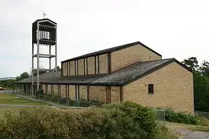 The church was designed by architect Harald Hille and was consecrated by bishop Johannes Smemo on December 11, 1960. It is a yellow brick church. There is a separate bell tower. Church orientation is from northeast to southwest. The church room itself can seat about 270 people, and there is an adjoining church hall. In addition, the built-in kitchen, church room, meeting room, offices and two rooms as well as shelters. There is a small sacristy near the organ. The church organ has 14 voices and was put into service a month after the church was consecrated.[2][3]