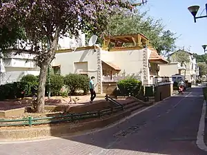 On 19th January 1991 during the First Gulf War a shelter just in front of Beit Dani was directly hit by an Iraqi Scud rocket. Although the shelter was used by the neighbours regularly, just on this day after the alarm the lock malfunctionned. So, because of this empty shelter no one was hurt or killed.[3] To commemorate the escape an iron memorial (named "Angel of peace") with 3 wings was erected in 1992 in front of Beit Dani, inscribed at the bottom with biblical words in Hebrew ("covering with their wings" (Exodus 25:20)).