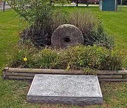 This marker and the red millstone were intended to mark the well where the victims were buried. In 1941 the landowner moved them, unaware that he had moved the marker from over the burial point. The exact location of the well is now not known.