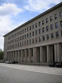 One of the remaining examples of Nazi architecture, the building was commissioned in 1933. The design competition attracted a number of entrants, including two Bauhaus architects who would later have to flee the Nazis, Walter Gropius and Ludwig Mies van der Rohe. The jury selected Mies van der Rohe's design, but Hitler stepped in and awarded the commission to Heinrich Wolff.[1] Wolff's design called for a stone-faced structure over a reinforced concrete core.[2]