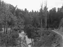 The river has several waterfalls. In 1908 one was described as 15 feet (4.6 m) high,[2] though a photograph from that era indicates it may be smaller.[3]