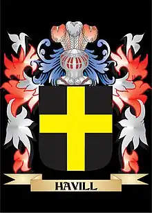 Havill is a habitational surname of Anglo-Norman origin. The family descends from Cotentin settlers of the Hauteville family, who arrived with the Norman Conquest and were rewarded with large land grants. Historically, the name has been most prevalent in the South West of England.