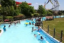The park sits on approximately 14 acres of land.[37] As of 2019, the park had 12 slides, 3 restaurants and 1 gift shop. It is known for its Breaker Bay family wave pool, the first large-scale wave pool in central Texas, and the 800-foot long Kona Kooler lazy river.[38]