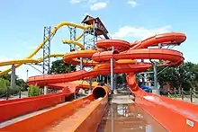 • Whirlwind 360 was a thrill ride with two slides that launch on top of a 60-foot tower launching two riders down two tubes that arc into a bowl. Once the riders do many revolutions, they will get out on stairs at the middle of the bowl. Opened in 2012. Closed and Demolished in 2020