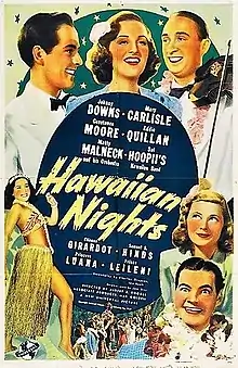 Hawaiian Nights is a 1939 American romantic comedy film directed by Albert S. Rogell. Produced by Universal Pictures, the film was written by Charles Grayson and Lee Loeb. It stars Johnny Downs, Constance Moore, and Mary Carlisle.[1]