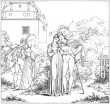 This fortune-telling is shown as a pantomime in the 1st act of Giselle, ballet by Jean Coralli and Jules Perrot (Paris, 1841).