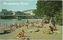 The point on the river now used by the bridge was used as a ford by settlers to Sonoma County since the 1850s.[1] The memorial bridge was built in 1921 by the American Bridge Company to carry the historic Redwood Highway; when built it was the only steel bridge across the Russian River.[1][2][3] At that time an annual temporary dam built downriver from the bridge created a swimming area;[1] the same part of the river still remains popular for swimming.[5]