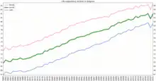 Life expectancy at birth in Belgium
