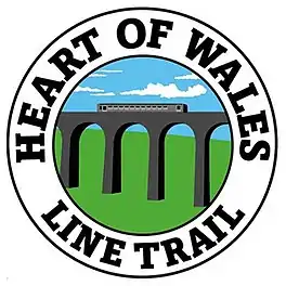 Heart of Wales Line Trail is a long distance footpath, running 229 kilometres / 142 miles from Craven Arms to Llanelli. It was opened in 2019 following four years of planning. The trail marker is a stylized image of a train crossing the Cynghordy Viaduct.