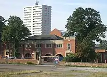 Victoria Hall is a block of student accommodation with four tower blocks in the Springfield area of Heath Town. The tallest block is 25 stories and when built in 2009 was the tallest modular building in Europe.[27]