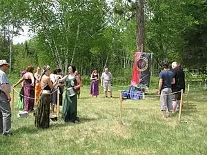 Unlike Ásatrú in the United States, the Folkish - Universalist divide is not readily apparent in Canada. This issue is dominated by factions of those Heathens claiming that only those of Germanic ancestry may practice the folk-way (Folkish) while others claim that no such requirement exists (Universalist). It is the attitude of most Canadian Heathens that no person has the right to discriminate against another's willingness to adherence to heathen custom and many Canadian Heathen organizations have reaffirmed that.[11][12] In Canada, racialism is marginalized within the mainstream Heathen community. However, some white supremacist and neo-Nazi organizations in Canada do co-opt Heathen symbols for their own purposes, but are outcast by Heathen organizations.[13]