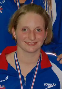 Heather Frederiksen MBE (born 30 December 1985) is a retired British Paralympic swimmer. She is former world record holder in the women's S8 100 m backstroke, 50 m freestyle, 100 m freestyle, 200 m freestyle and 400 m freestyle events. As of June 2017, she still holds European records in the S8 200 m and 400 m freestyle.[2][4] Frederiksen is a two time Paralympic champion in the 100m backstroke S8 classification, and has won eight Paralympic medals in all.[5]