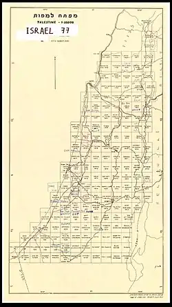 - ↑ A British Mandate map, contained at the National Library of Israel (Eran Laor Cartographic Collection, Jaffa: Survey of Palestine 1928 – 1947, "Palestine" (Pal 1157)); an Ottoman period map, the Palestine Exploration Fund Map, published by the Israel Antiquities Authority SWP web-site, and which is chiefly studied by archaeologists and historical geographers when trying to determine what Arabic place names are representative of ancient Hebrew toponymy. Other online maps include: George A. Smathers Libraries: Survey of Palestine map; The Palestine Exploration Fund Maps, published by The Digital Archaeological Atlas of the Holy Land; McMaster University - Digitalised maps of Palestine / Israel; 1944 Map of Palestine, published by the National Library of Israel.