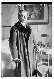In 1908 Dufranne went to the United States for the first time to sing with the Manhattan Opera Company in the American premiere of Pelléas et Mélisande. He returned for several more productions through 1910, appearing as le Prieur in Le jongleur de Notre-Dame (1909), Caoudal in Sapho (1909), Rabo in Jan Blockx's Herbergprinses (performed in Italian as La Princesse d'Auberge, 1909), John the Baptist in Richard Strauss's Salome (1910), and Saluces in Massenet's Griselidis (1910). He also sang with the Chicago Grand Opera Company and the Chicago Opera Association from 1910 to 1922, creating there Léandre in The Love for Three Oranges (in French) by Sergei Prokofiev, in 1921.[5]