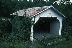 The bridge's construction date is not known. It is known to have been built by the town's Jewett brothers, who are credited with building Montgomery's other surviving covered bridges. This assemblage is one of the most concentrated in Vermont all attributable to a single builder. The Jewetts used standardized dimensions for their construction (except for the bridge length), and prepared wood for the bridges at their lumberyard in Montgomery's West Hill area.[2] The bridge was originally located in Montgomery Center, and was relocated to the Gibou Road location in the early 1900s. As of 2003, the bridge was reported to be in a local construction yard, awaiting repairs and a determination by the town of where to place it.[3]