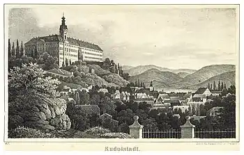 Heidecksburg is a Baroque palace in Rudolstadt, Thuringia, and served as the residence of the princes to Schwarzburg-Rudolstadt. It is located prominently approximately 60 m above the old town. After a fire in 1735 and its reconstruction, it has remained intact, including during World War II.