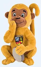 A plush toy of the monkey has been available for purchase since May 2016. There are two versions of it with different sizes, which can be obtained in several shops in Heidelberg Old Town. Since the plush toy is intended for children, the monkey does not grasp its posterior or show the sign of horns. Instead, it touches its mouth. The monkey's chest is labeled with the city's name, beneath which there is a coat of arms, which is a combination of the coat of arms of Electoral Palatinate, the coat of arms of Baden and the flag of Germany. [3]