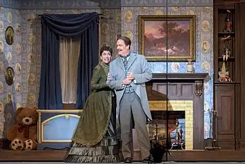 Stober has also had engagements as a guest artist with numerous American opera companies. In 2002 she gave her first performance with the Boston Lyric Opera as Yvette in Puccini's La rondine; returning there the following year to perform the role of Rosalinde in Johann Strauss II's Die Fledermaus.[1][2] In 2006 she made her debut with Boston Baroque as Zerlina in Don Giovanni, her debut with Opera Colorado as Pamina in The Magic Flute, her debut with Utah Opera as The First Lady in The Magic Flute, and performed the roles of the Comtesse in Rossini's Le comte Ory and Mozart's Barbarina at the Wolf Trap Opera.[4] In 2007 she returned to the Boston Lyric Opera for performances as Oscar in Verdi's Un ballo in maschera, made her debut at New York City Opera (NYCO) as Poppea in Handel's Agrippina and her debut at the Santa Fe Opera as La Folie/Thalie in Jean-Philippe Rameau's Platée. She returned to the NYCO the following year for performances of Purcell's King Arthur.[5] In 2008 she performed the role of Carolina in Domenico Cimarosa’s comic opera Il Matrimonio Segreto at the Brooklyn Academy of Music and returned to Santa Fe to perform the role of Tigrane in Handel's Radamisto.[6]