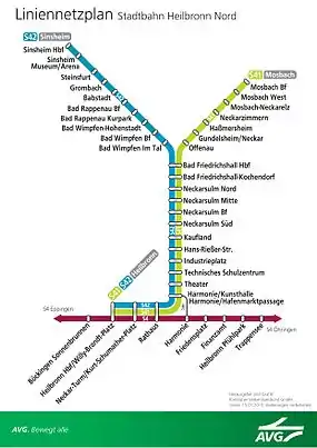 - ↑ "Feierliche Inbetriebnahme Stadtbahn Heilbronn Nord am 1. Mai 2015 in Bad Wimpfen" (PDF; 60.36 KB) (Press release) (in German). DB Mobility Logistics AG and AVG. 23 April 2015. Retrieved 22 May 2016.