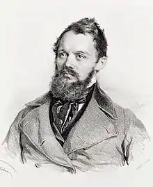 In 1839, he again settled in Leipzig and began a literary activity as a playwright. Chief among his earlier productions are the tragedies Monaldeschi (1845) and Struensee (1847); the comedies Rokoko, oder die alten Herren (1846); Gottsched und Gellert (1847); and Die Karlsschüler (1847), of which the youthful Friedrich Schiller is the hero.[1]