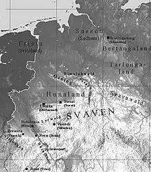 - ↑ William J. Pfaff: The Geographical and Ethnic Names in the Þíðriks Saga (Mouton & Co., The Hague 1959), see p. 91f.: [i]n Þíðriks saga, a kingdom in northern Germany.