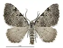 The larvae feed on moss species of the genus Racomitrion.[2]