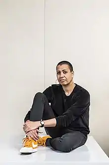 Helen Cammock (/ˈkæmɒk/ KAM-ok;[1] born 1970) is a British artist. She was shortlisted for the 2019 Turner Prize[2] and was awarded the prize along with the other three nominees (Tai Shani, Oscar Murillo and Lawrence Abu Hamdan). For the first time ever, they asked the jury to award the prize to all four artists and their request was granted.[3] She works in a variety of media including moving image, photography, poetry, spoken word, song, printmaking and installation.
