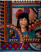 Bountiful Mother made in 1980 represents two aspects of motherhood from the Pueblo and Hopi culture: Corn Mother and Mother Earth. The cultivation and consumption of corn was so central to the pueblo culture that it was "... a living entity with a body similar to man's in many respects ...the people built its flesh into their own." In the work, the woman's fertility is symbolized by the kernels of blue corn of her body.[10] In 1981 she made the self-portrait Metamorphosis: "The features were contained within a perfect circle, a Jungian archetype of psychic wholeness and the symbol for Hardin of life itself, but everything else about the painting was fragmented, jagged and asymmetrical," said Jay Scott, her biographer, of the "tormented pieces of her life."[6]