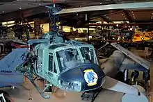 Although there are no longer Navy HH-1K Iroquois helicopters in U.S. Naval service, HA(L)-5's aircraft are still available to be seen. One of HA(L)-5's HH-1K is on static display at the National Museum of Naval Aviation.[8] Although configured to represent the HA(L)-3 Seawolves aircraft 301 of the Vietnam War, it is in fact Navy Bureau Number 157188 of HA(L)-5.[8][9] Another one of the HA(L)-5's HH-1K is still flying as part of the Ventura County, California Sheriff and Fire Department's Search and Rescue (SAR) Aerial unit. Although no longer painted in the original olive-drab, low-infrared paint, the former gunship can be seen in its new yellow and blue colors of Ventura County at Camarillo Airport, California.[9][10] HH-1K NW305 is on display at the China Lake Museum of Armament and Technology. This aircraft was restored for the museum by former HAL-5 Bluehawk enlisted and officers. NW305 is slated to be refurbished in the near future again by the crewmen who originally flew and maintained her during her career as a gunship.