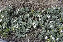 Heliotropium crispum is a very variable annual or perennial herbaceous plant. It has greyish leaves and dense cymes of small white flowers.[2]