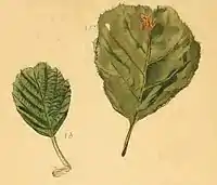 The larvae feed on Alnus glutinosa, Alnus glutinosa x incana and Alnus incana. They mine the leaves of their host plant. The mine starts in a heavy leaf vein. The larva bores in the vein, descending towards the midrib. The larva may move from one thick vein to another with a thin transverse corridor. From the midrib, the larva descends into the petiole. Finally, the larva returns to the leaf through the midrib. Here, it makes a short, full depth, widening corridor with a clear central frass line.[4] Larvae can be found from June and July to October. When full-grown, they cut out an oval case, in which they descend to the ground to pupate.