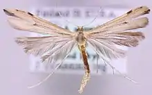 - ↑ Kim, Sora; Byun, Bong-Kyu; Park, Kyu-Tek; Lee, Seunghwan (2010-05-24). "Taxonomic study of the tribe Oidaematophorini (Lepidoptera: Pterophoridae) from Korea, with descriptions of the two new species". Journal of Natural History. 44 (23–24): 1377–1399. doi:10.1080/00222931003679006. S2CID 86607316.