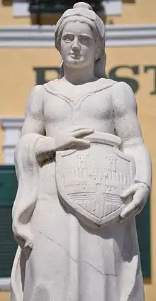 He created several sculptures for the market town of Oberdrauburg, e. g. the fountain figure depicting a young citizen woman wearing the traditional costume of the region and holding the crest of the town.[5]