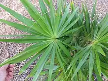 The leaves of the palm have an average length of 190 cm (75 in) and the inflorescence of the palm is tightly clustered, giving rise to the species name. A mature H. compacta can have a massive trunk of up to 10 cm (3.9 in) thick and more than 20 m (66 ft) in height. The genus Thrinax has been grown in gardens. In addition, in Thrinax the fruits are dispersed and eaten by West Indian woodpeckers and other birds, gray squirrels and lizards.[2][3]
