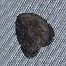 Head, thorax and forewings are dark purplish grey. Forewings with a fulvous speck on an ochreous ground at end of the cell. A dark line runs from the costal center to the near apex and then curved round to the outer angle. Abdomen and hindwings pale ochreous. Bornean specimens are white.