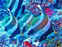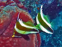 - ↑ Dianne J. Bray. "Heniochus chrysostomus". Fishes of Australia. Museums Victoria. Retrieved 25 November 2020.